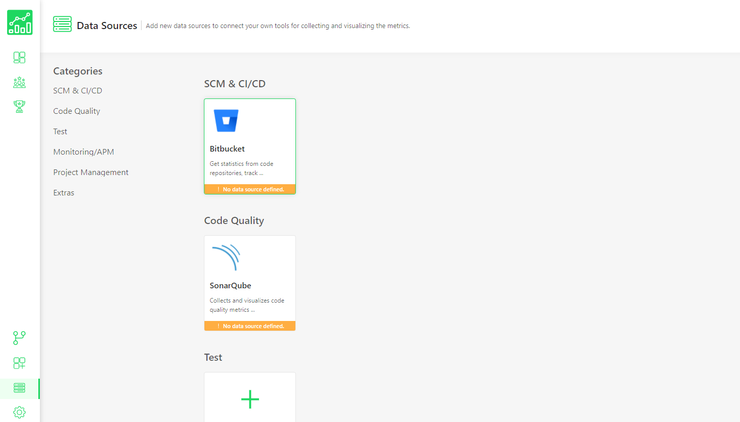1. Navigate to Data Sources, and select Bitbucket to add a new data source.